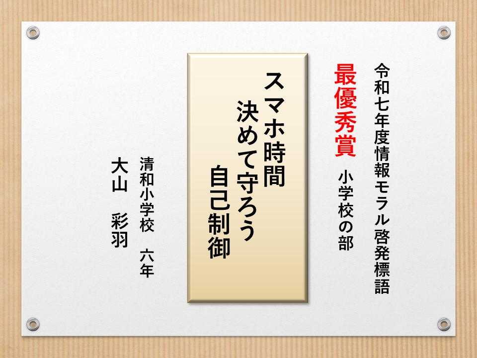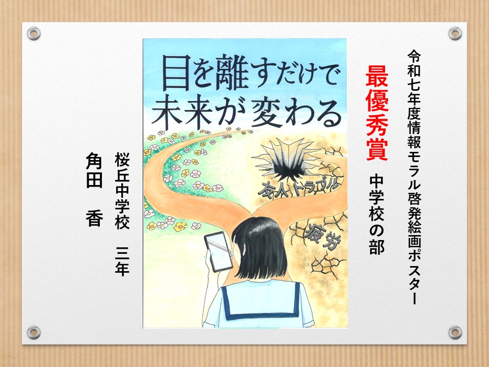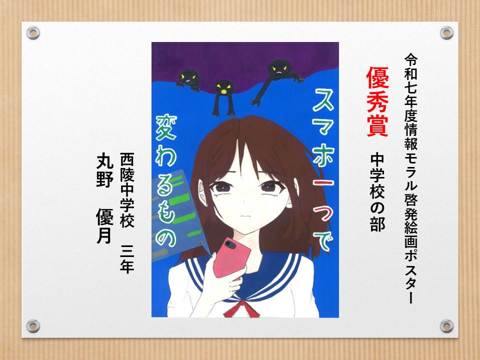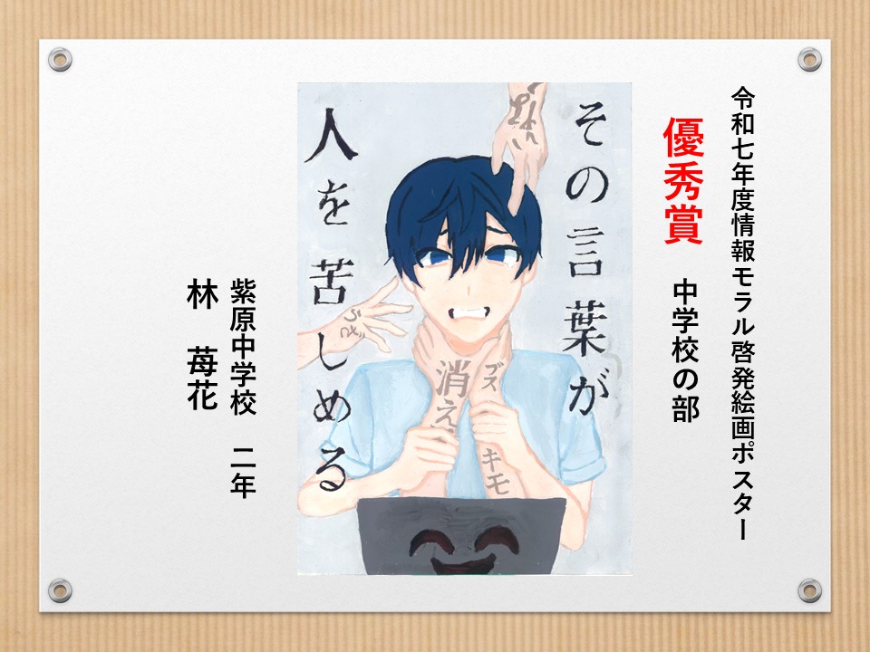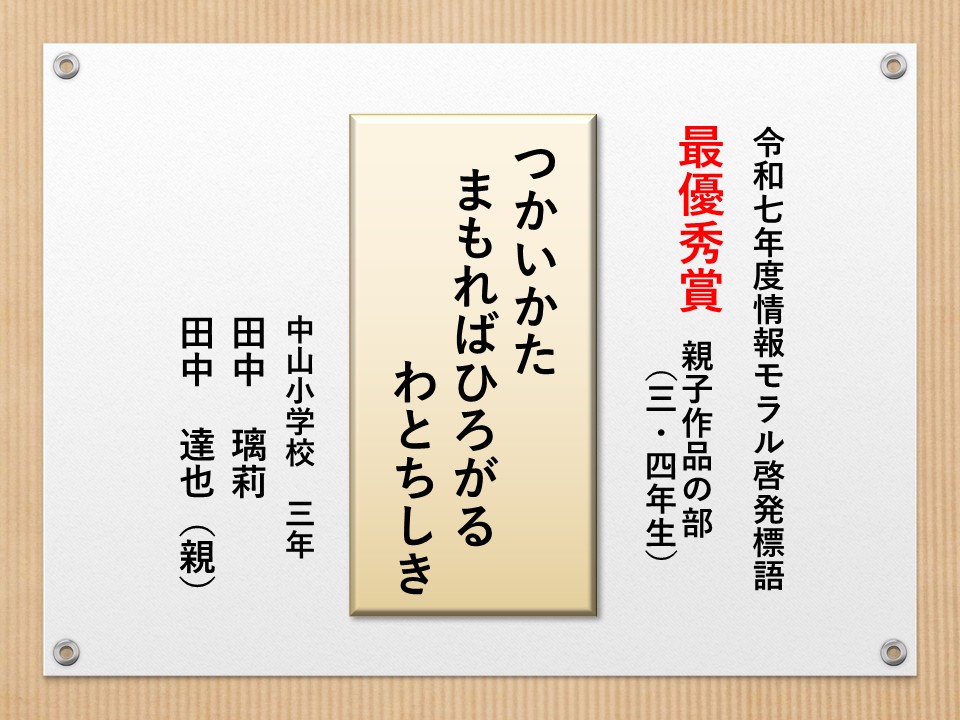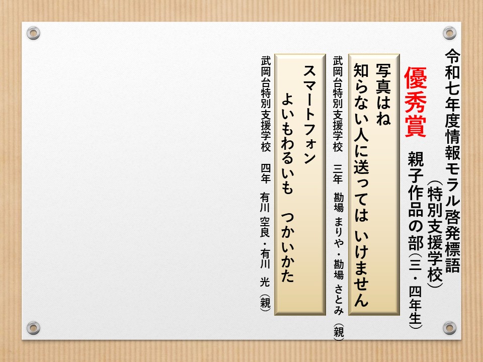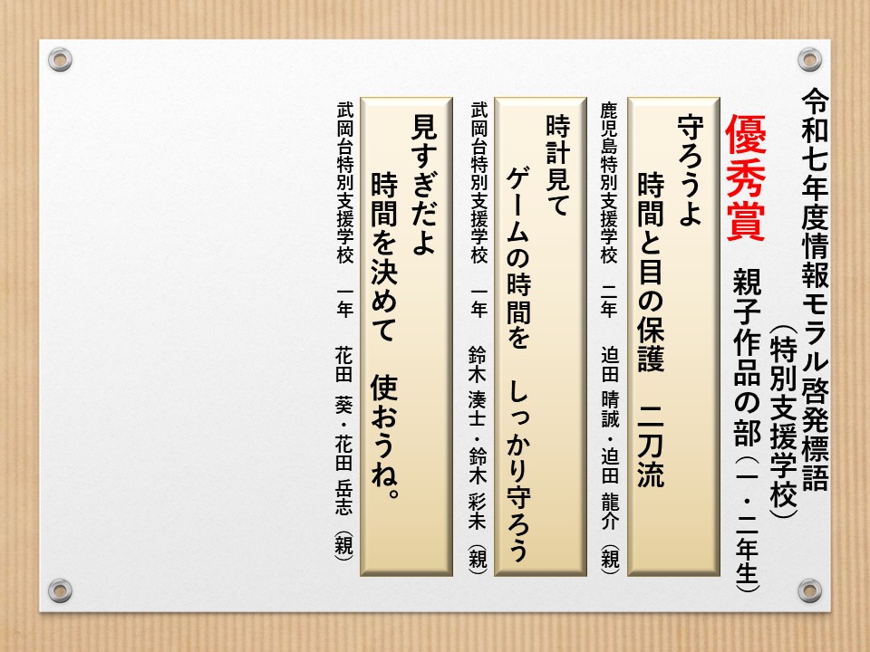 最後に皆様方の作品を通して、これからの生活において情報モラルについて親子で考え 語り合う機会が増え、家庭教育の充実に繋がればと願っております。