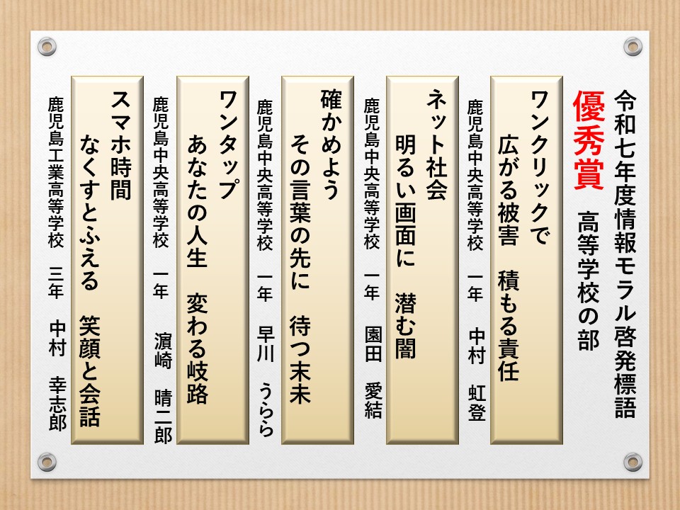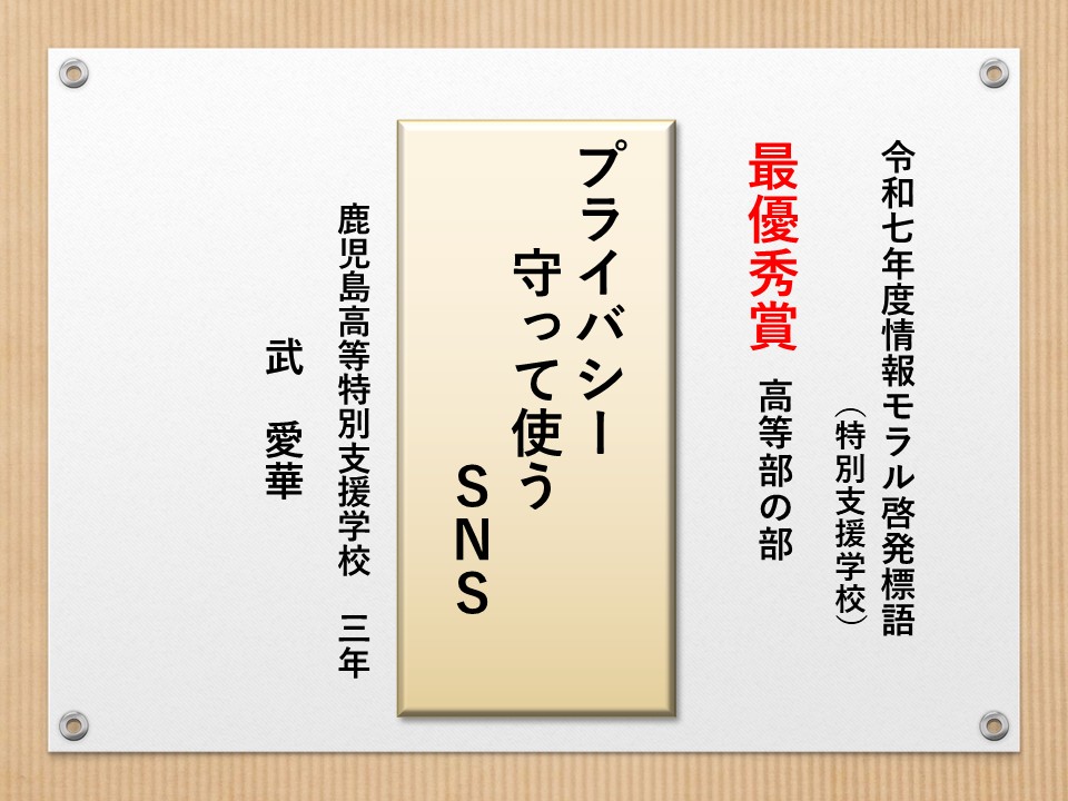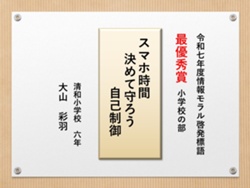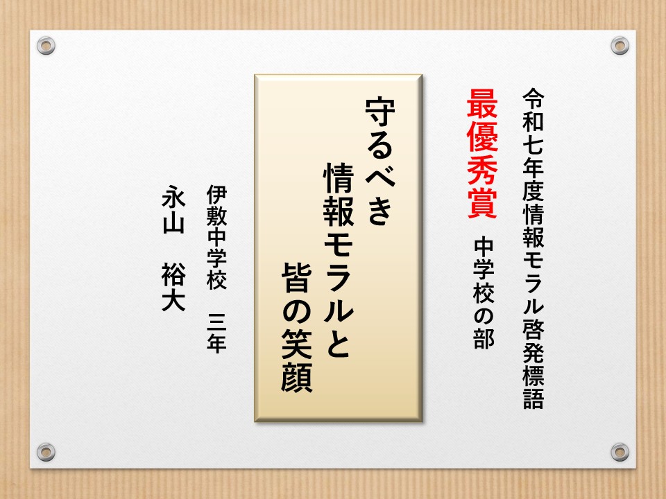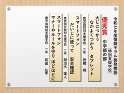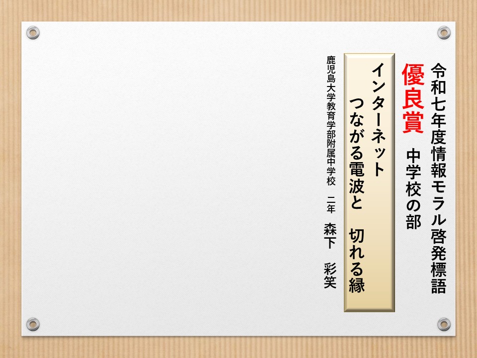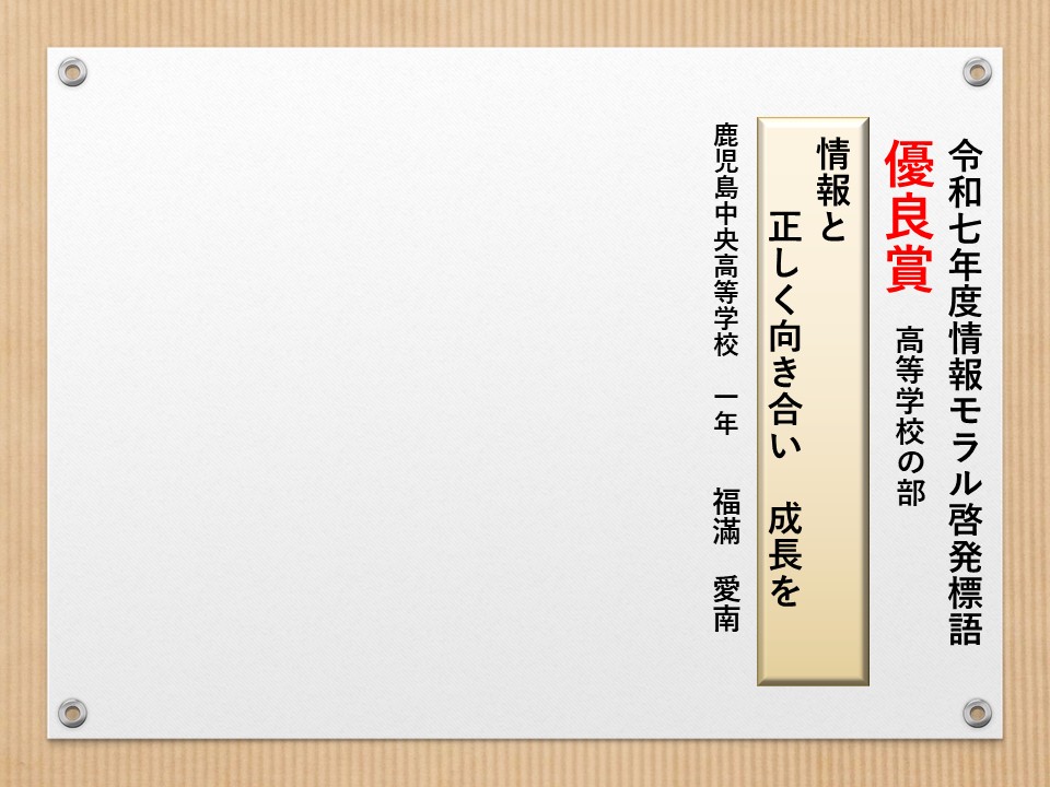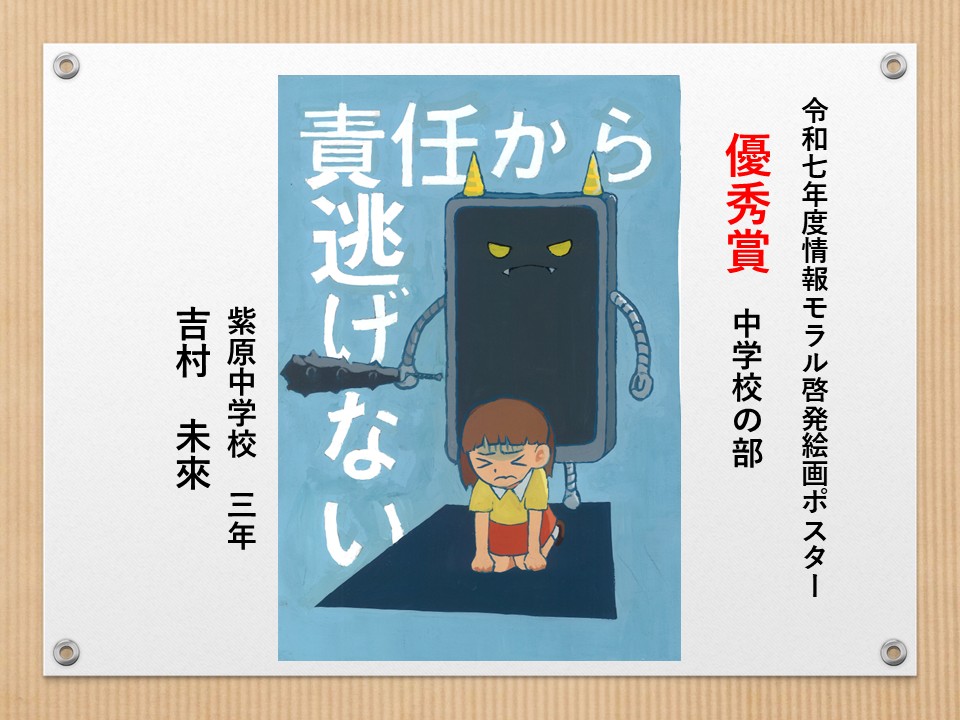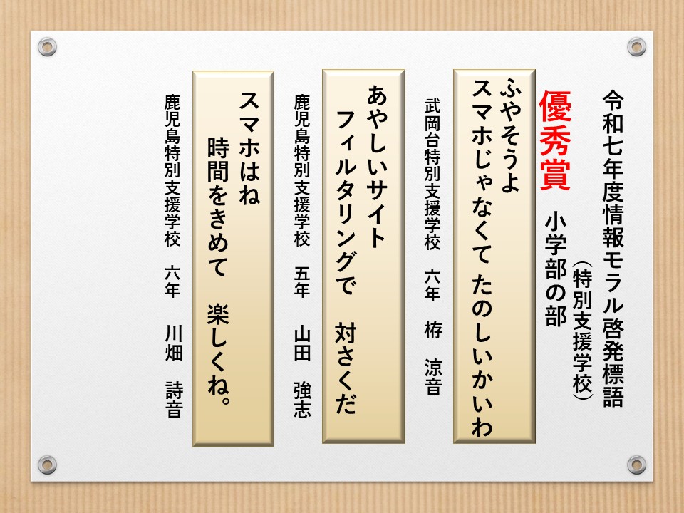 最後に皆様方の作品を通して、これからの生活において情報モラルについて親子で考え 語り合う機会が増え、家庭教育の充実に繋がればと願っております。